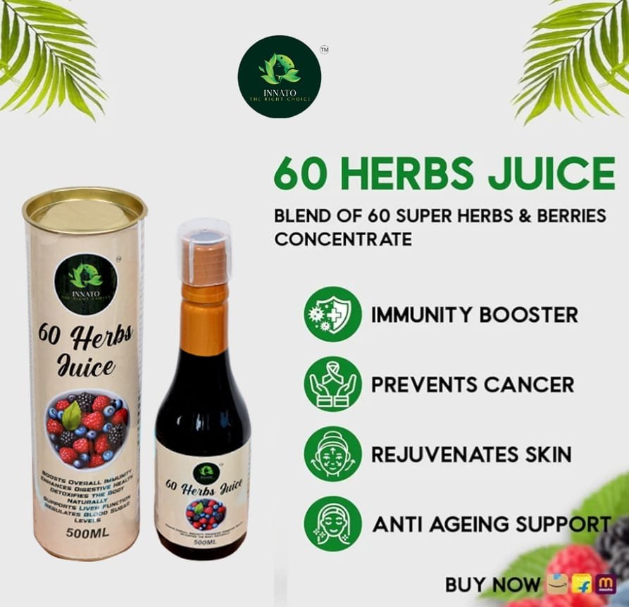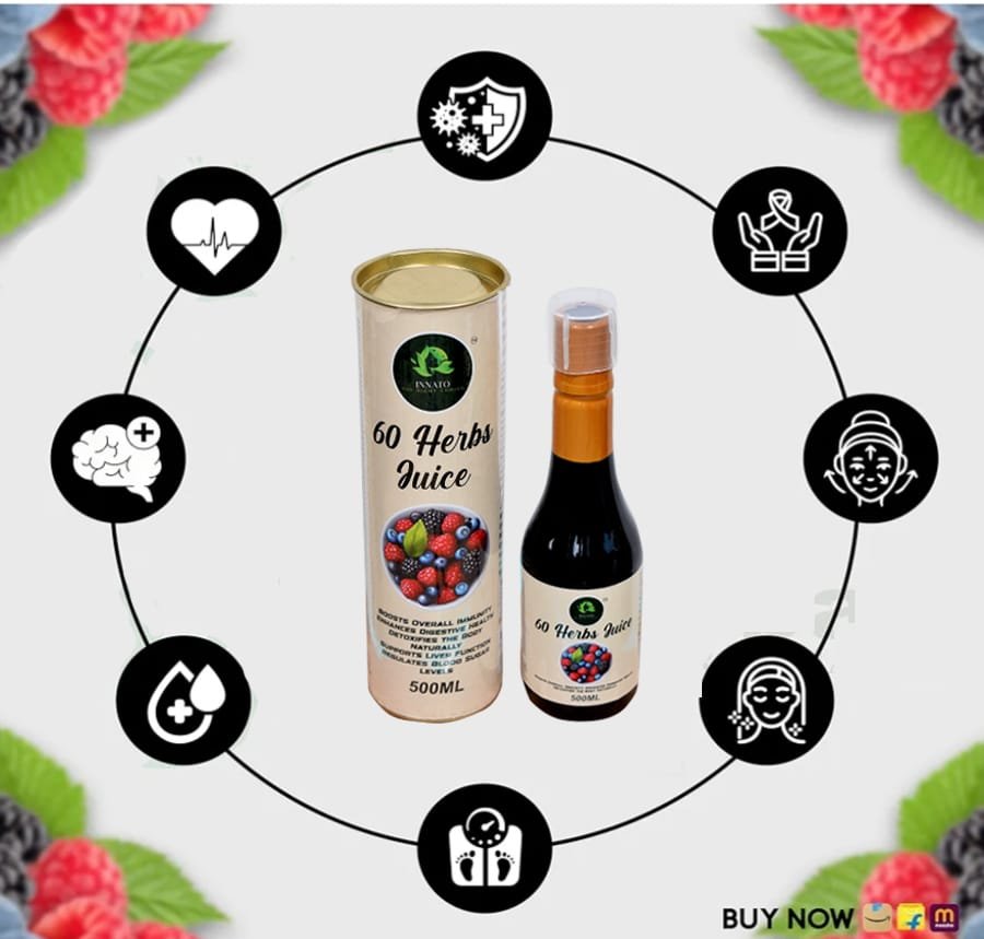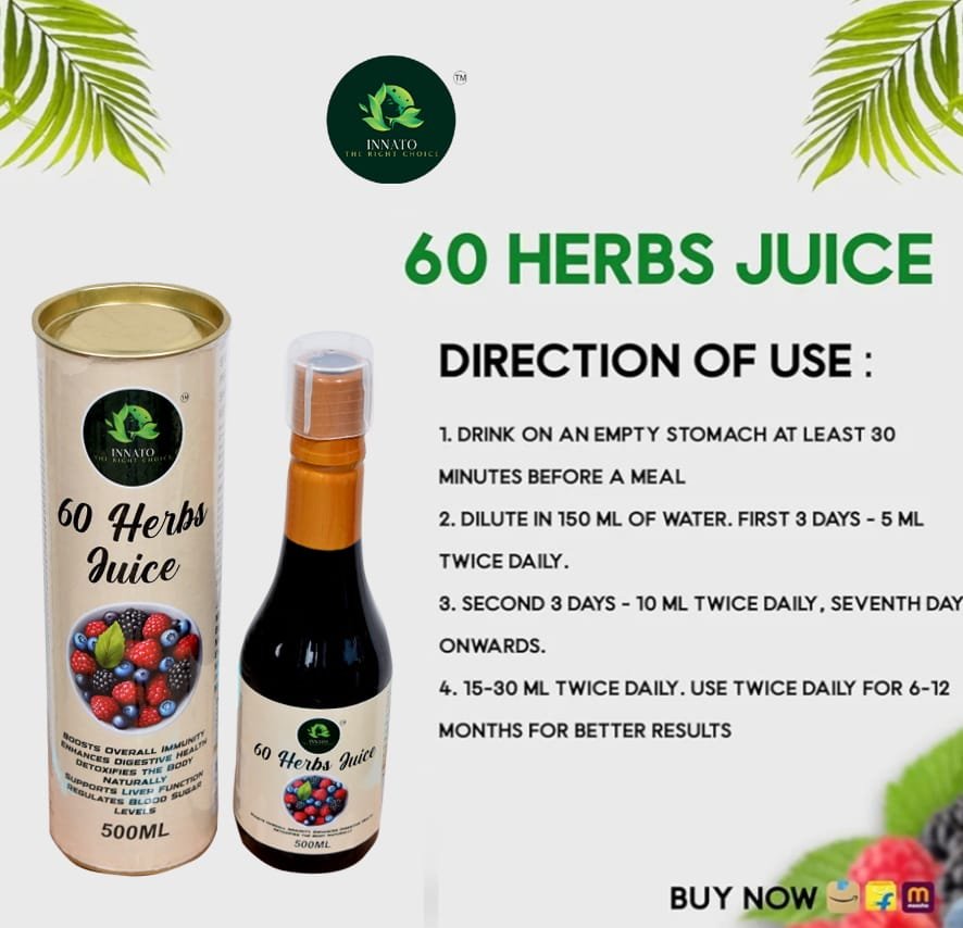 60 Powerful Herbs in One Juice – Contains Aloe Vera, Noni, Amla, Ashwagandha, Spirulina, Moringa, Garcinia, Acai Berry, and more for complete body wellness.